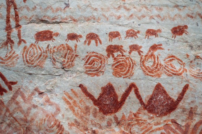 Archaeologists describe La Lindosa as a cultural landscape, a place where art, geology, ecology, and spirituality intertwine. The Serranía’s towering sandstone walls were formed by tectonic forces millions of years ago, creating natural canvases that humans began to paint long before the earliest agricultural societies emerged.